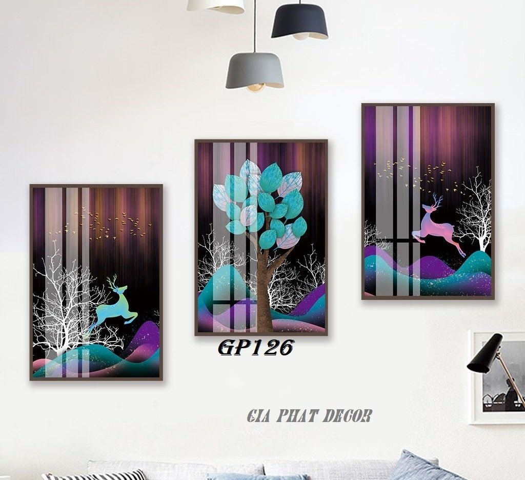 – Theo diện tích: 15m2 – bộ 3 tranh 30×40, 20m2 bộ 3 tranh 35×50, >25m2 bộ 3 tranh 40×60 hoặc tranh decor đơn 50×70, 60×90
